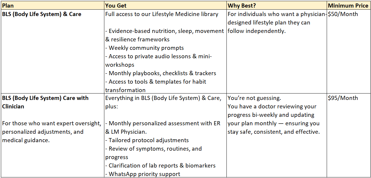 - For those who want structured, personalized guidance from our doctors and Lifestyle Medicine specialists.